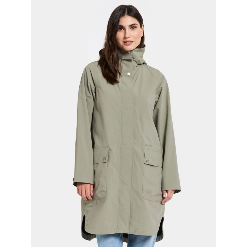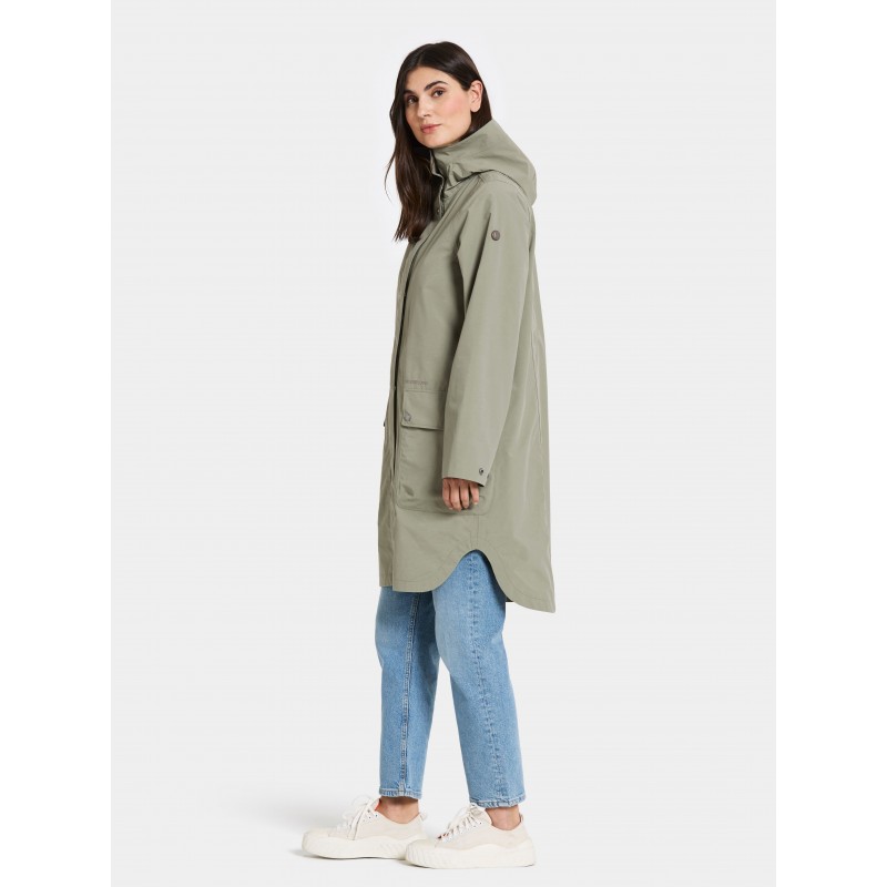 Adria er en trendy dameparka med en afslappet pasform, perfekt til hverdagens eventyr. Den er både vand- og vindtæt med tapede sømme og fremstillet i et åndbart materiale, hvilket gør den ideel til alle vejrforhold. Parkaen har en justerbar hætte og lukkes med en kombination af lynlås og knapper for ekstra beskyttelse.