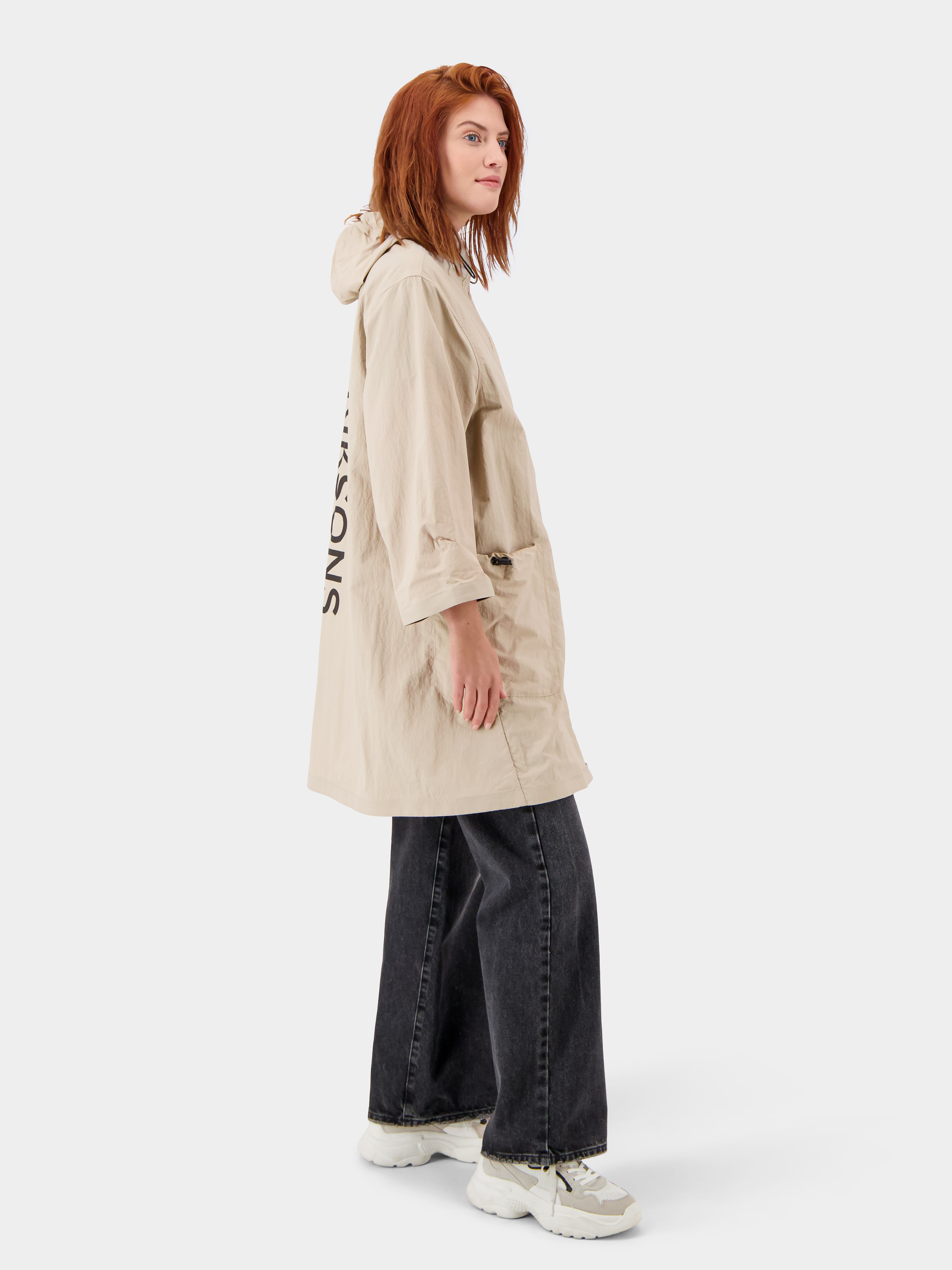 Juno er en let og moderne parka. Ærmernes bredde kan justeres ved hjælp af knapper, og designet inkluderer en fast hætte.