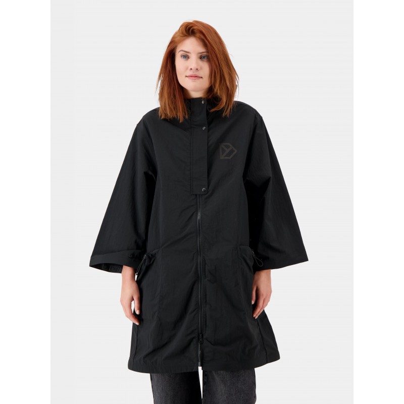 Juno er en let og moderne parka. Ærmernes bredde kan justeres ved hjælp af knapper, og designet inkluderer en fast hætte. Denne parka har dropped shoulders, poselommer og et logo påtrykt på ryggen. To lommer med snorejusteringer. Fremstillet af 55 % genvundet polyamid med en finish, der har crinkle-effekt.