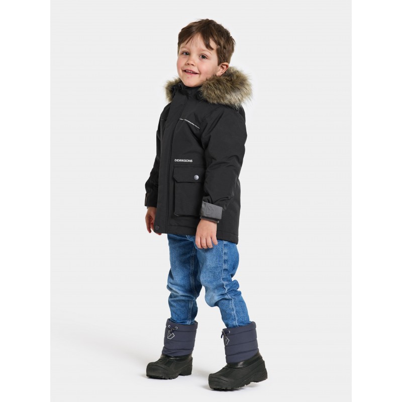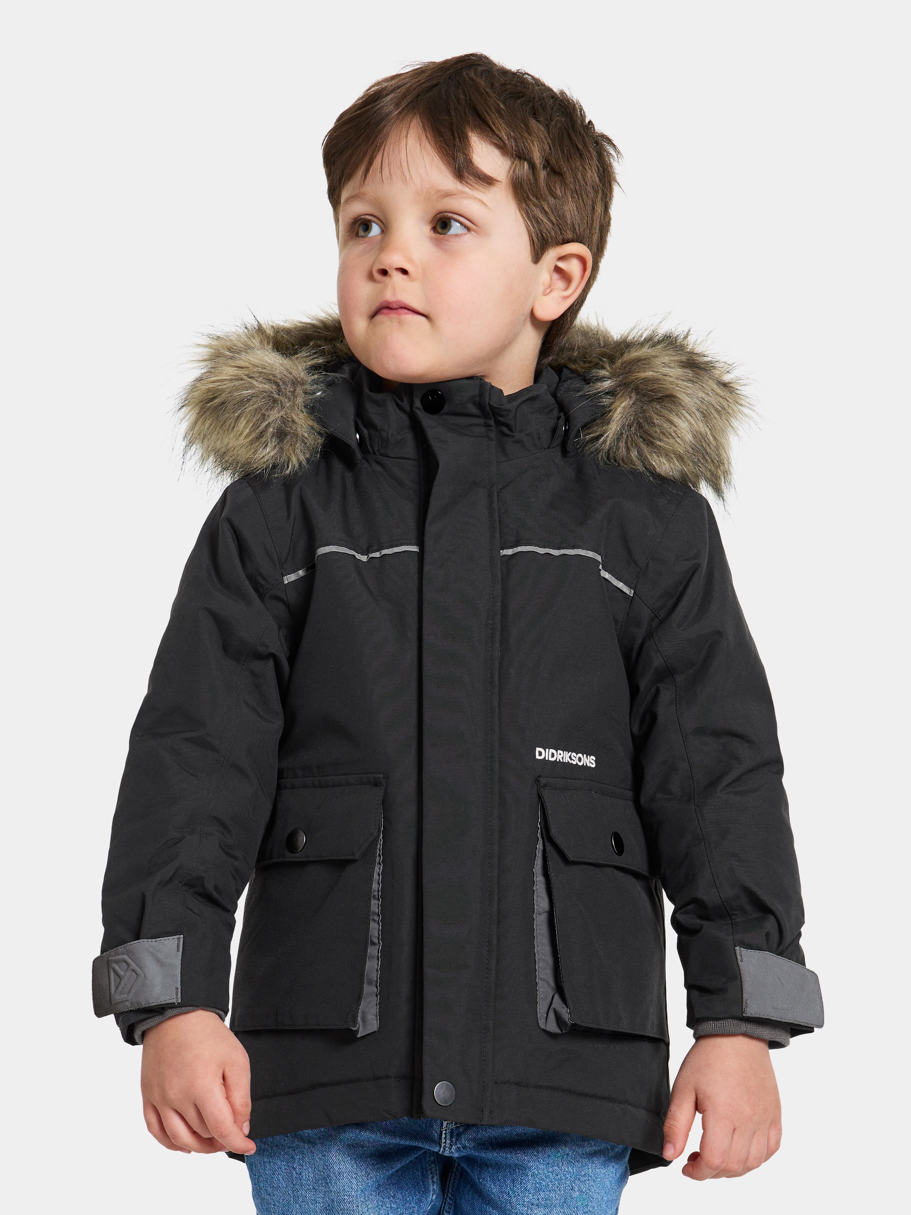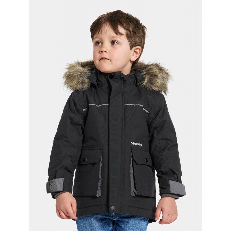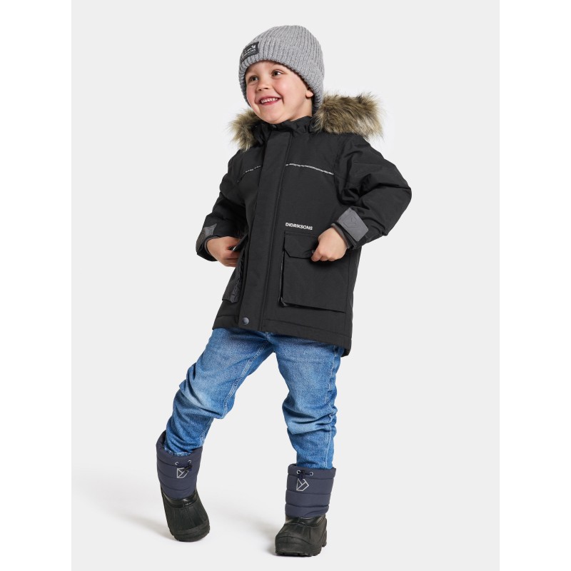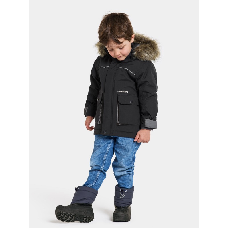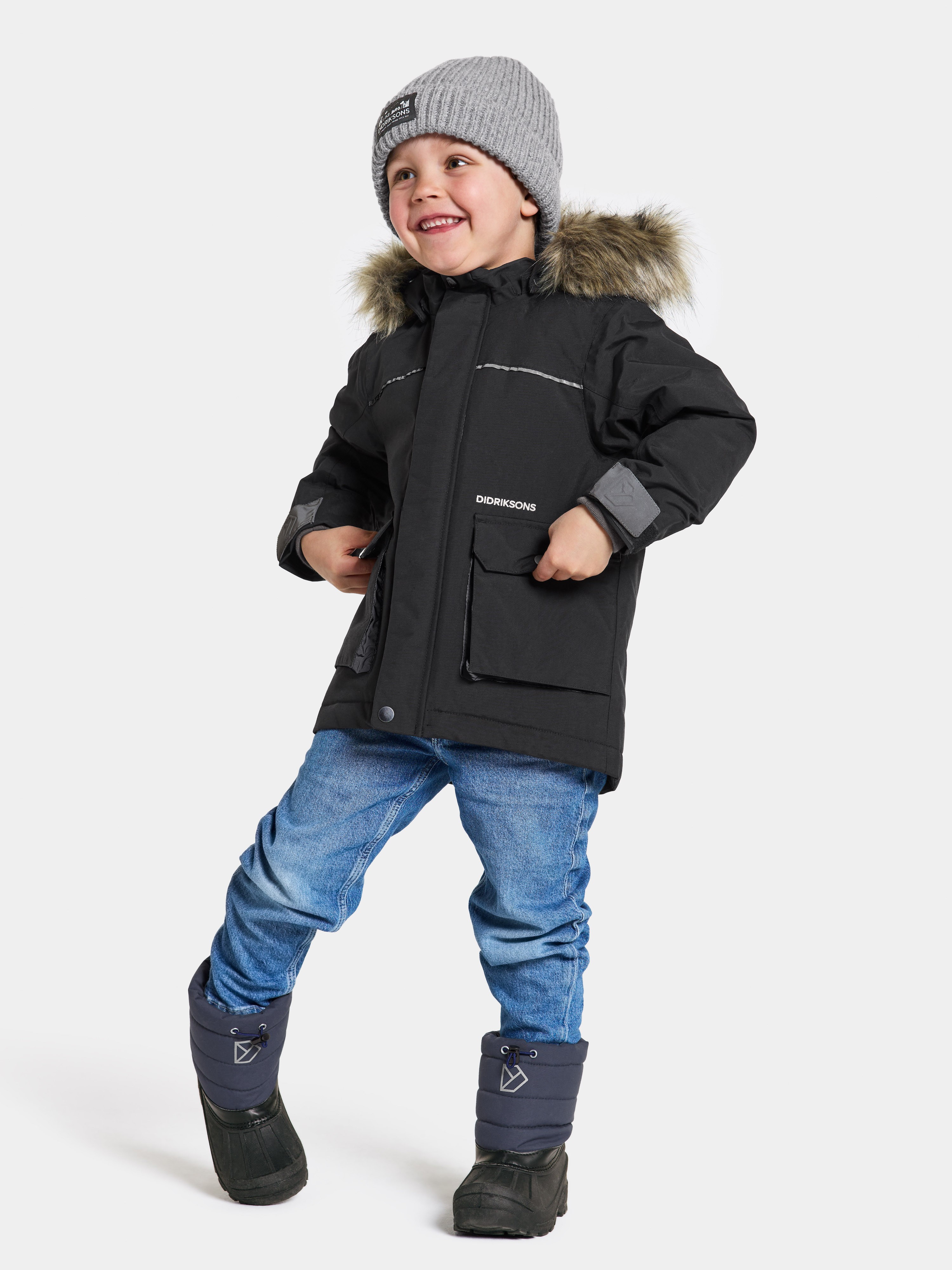 Kure er en varmt vatteret parka fremstillet af et vind- og vandtæt stof. Den er slidstærk og åndbar med tapede sømme. Denne parka har refleksdetaljer på manchetterne, som kan justeres med velcro, der ikke hænger fast i stoffet, samt refleksdetaljer på paspoleringen og bagpå.