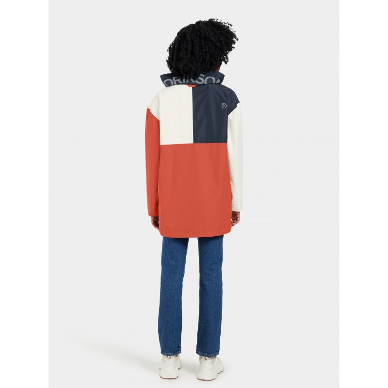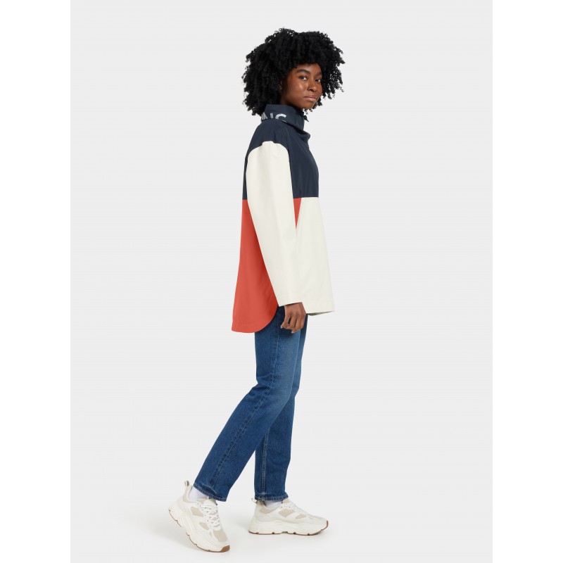 Thyra er en stilfuld og funktionel jakke med en afslappet pasform, perfekt til hverdagens eventyr. Den har en ståkrave med justeringsmuligheder og en formet kant forneden for en moderne silhuet. Jakken er både vind- og vandtæt med tapede sømme, samtidig med at den er fremstillet af et åndbart materiale for optimal komfort.