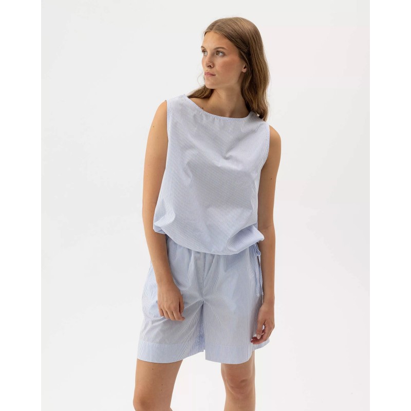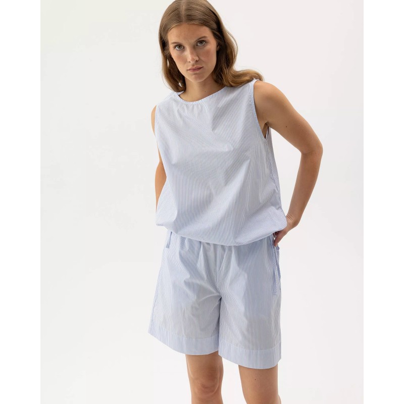 Shorts i sprød bomuldspoplin. Afslappet pasform. Komfortabel elastisk talje med snøre. Lommer i siderne og påsatte baglommer. Kombinér med Marie Top eller Marie Skjorte for et matchende sæt. Bæredygtigt produceret i Europa.