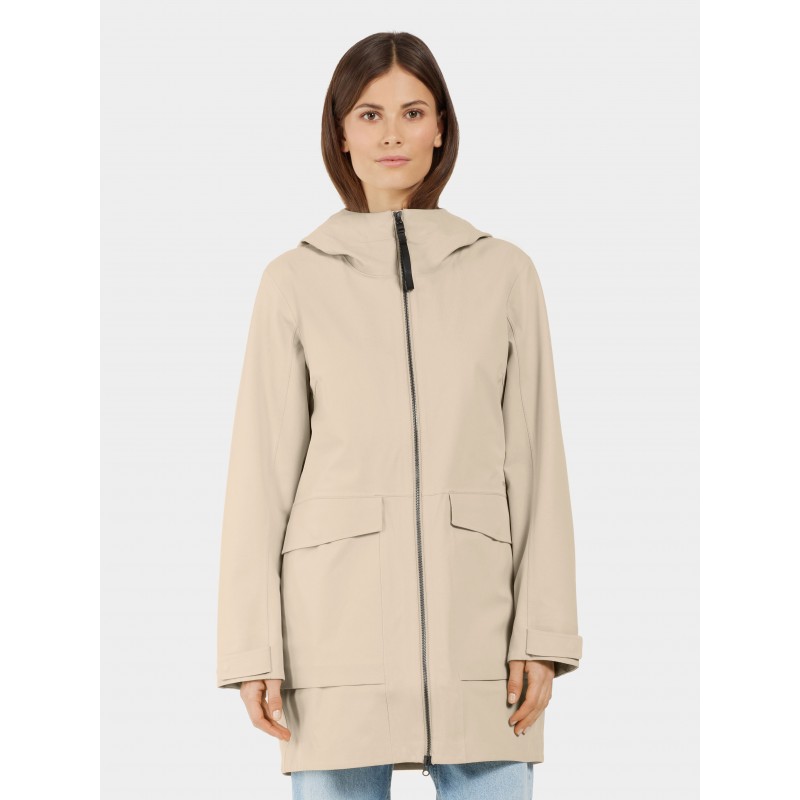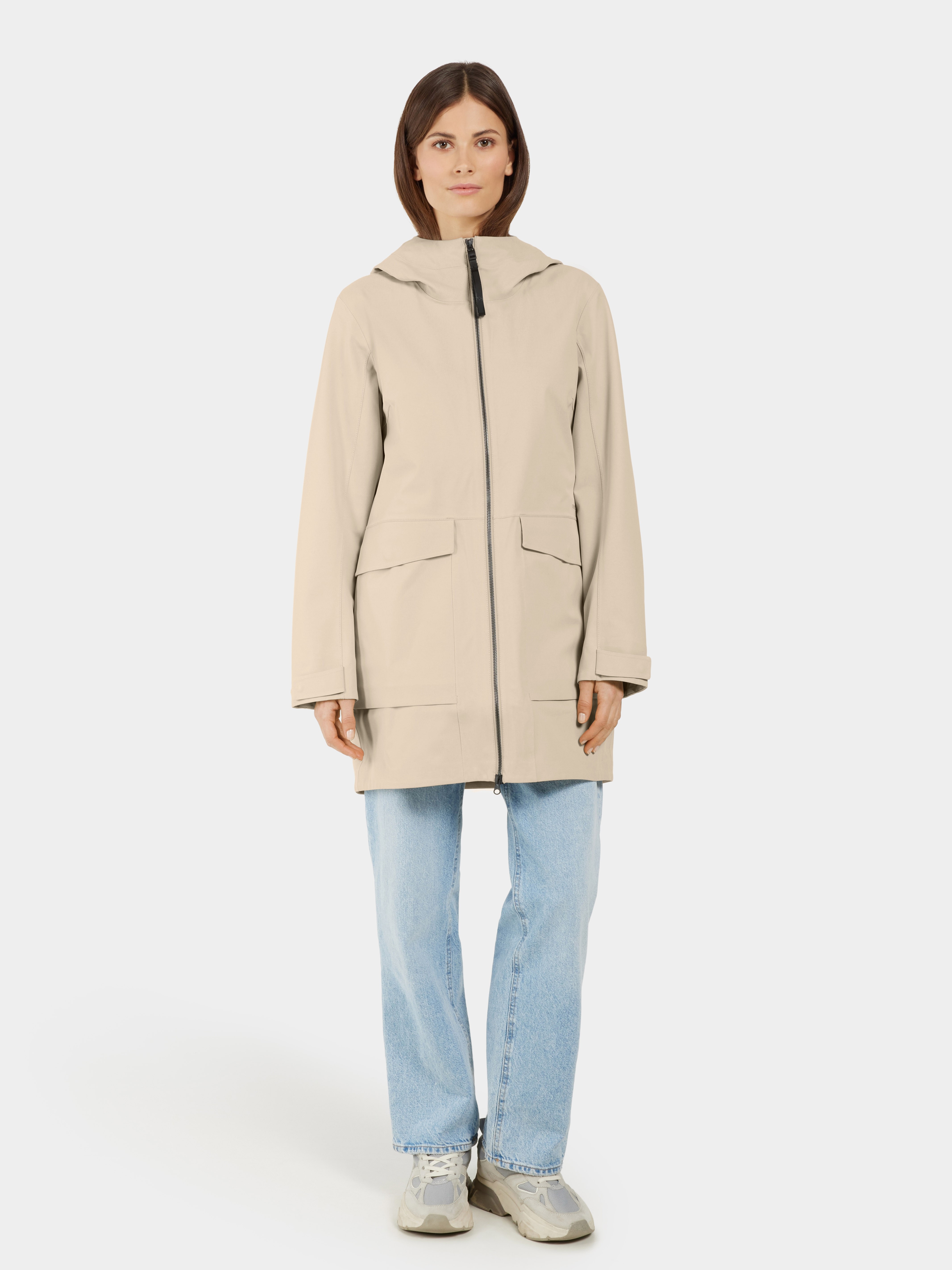 Fredrika er en smart softshellparka med en feminin silhuet. Denne parka er perfekt til forår og efterår, når temperaturerne netop begynder at falde eller stige. Den kan justeres i talje, ærmer og hætte og har i alt to lommer. Stoffet er vandafvisende og er fremstillet af 50 % SORONA®-garn og 50 % genvundet polyester.