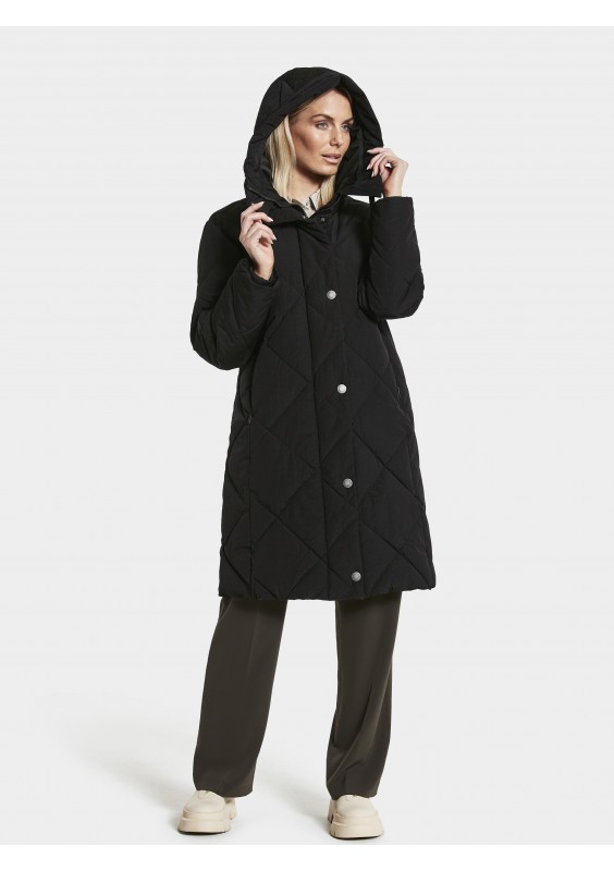 Torun er en vatteret, quiltet parka med en stor hætte og et super moderne design. Brug denne parka på de kolde vinterdage. Den har en afslappet pasform med en lige silhuet og en let kokonform. Den er lavet af et semi-shine stof, og den har en fast, justerbar hætte.