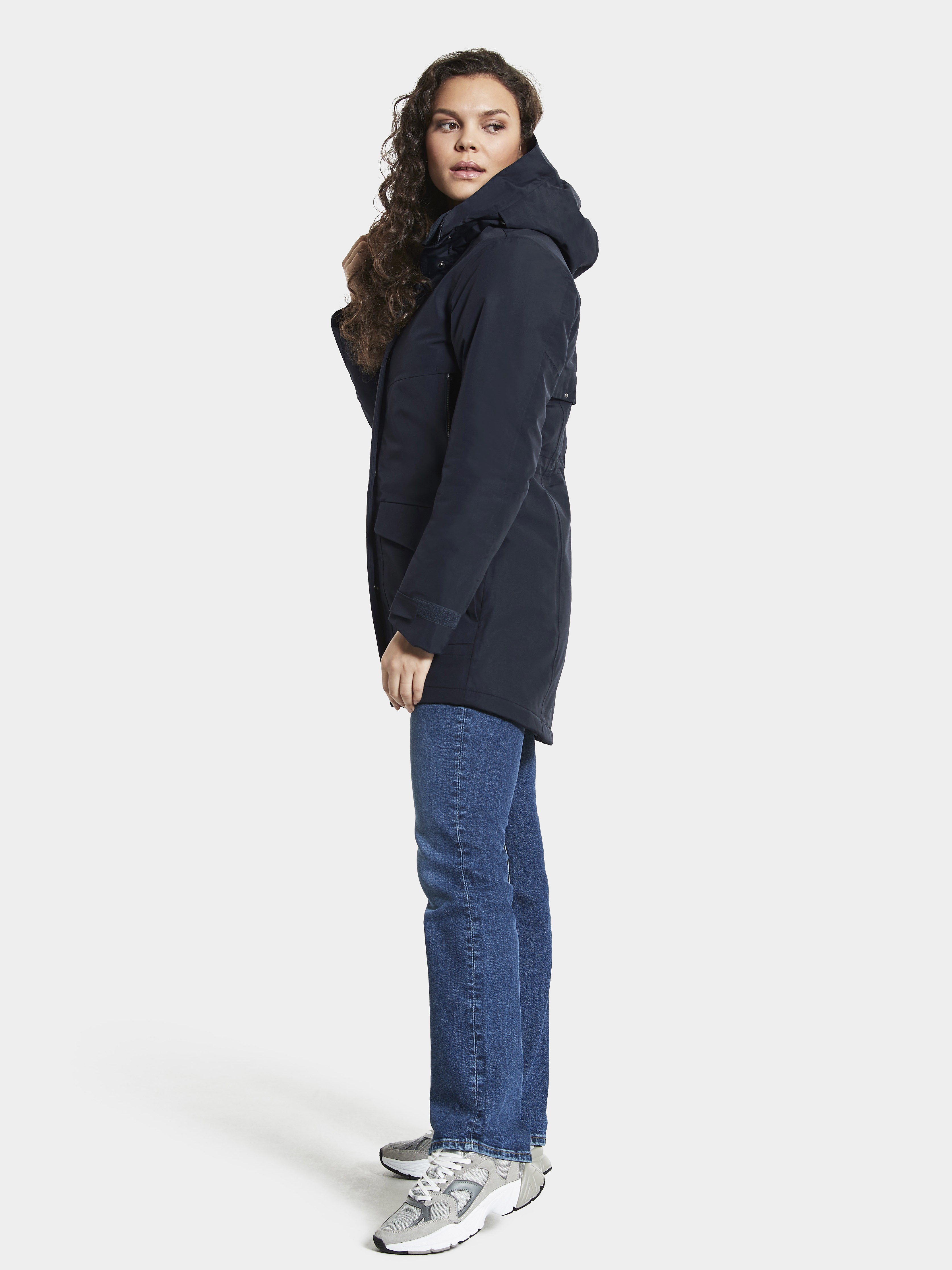 Frida er en varm, sporty mellemlang parka. Frida er 100% vindtæt og vandtæt med tapede sømme og åndbar.